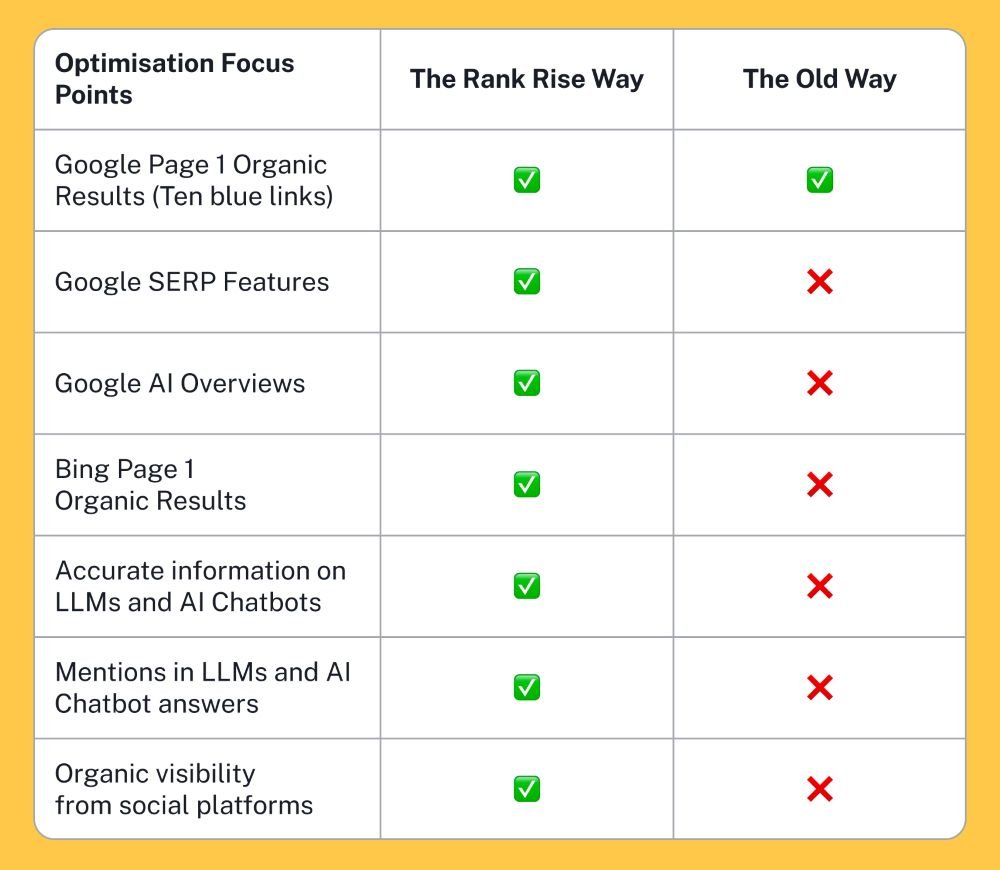 We architect a strategic content ecosystem tailored to your business where each piece works cohesively to maximise conversions and secure your brand in LLM training data—ensuring organic discovery through both traditional search and AI chatbots for years to come.